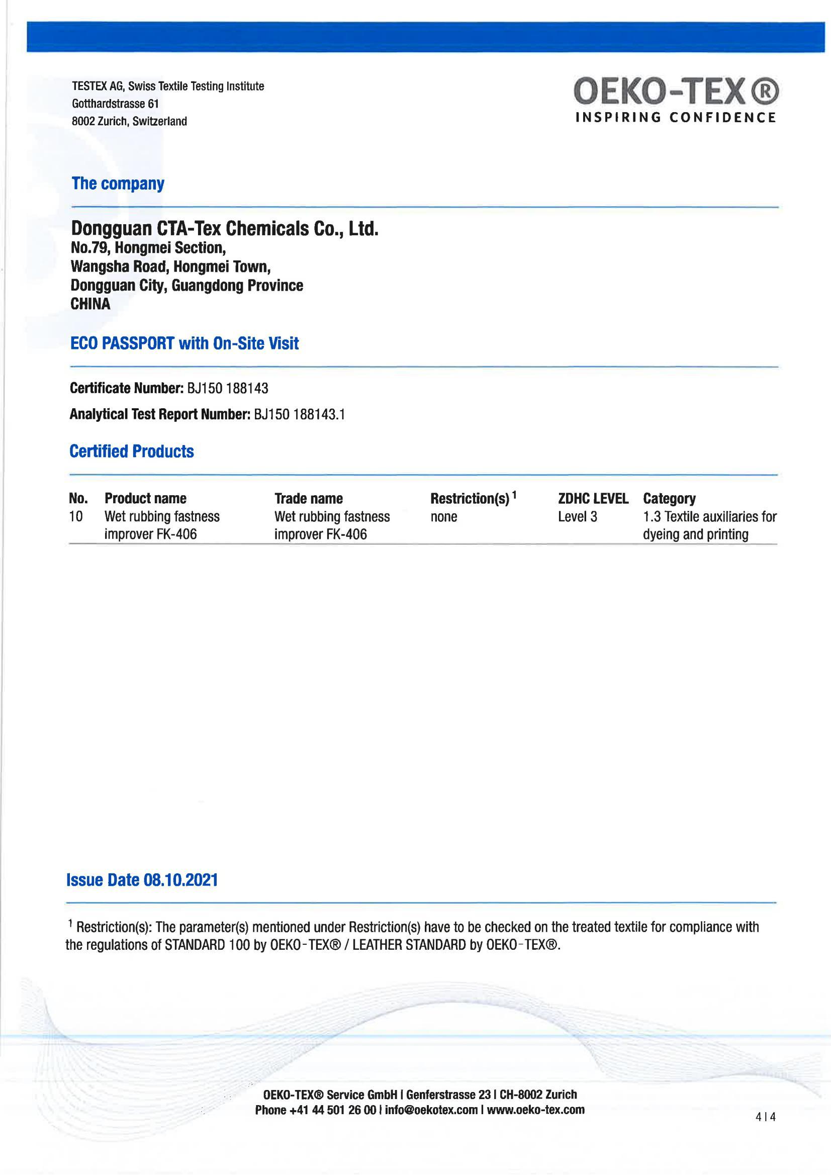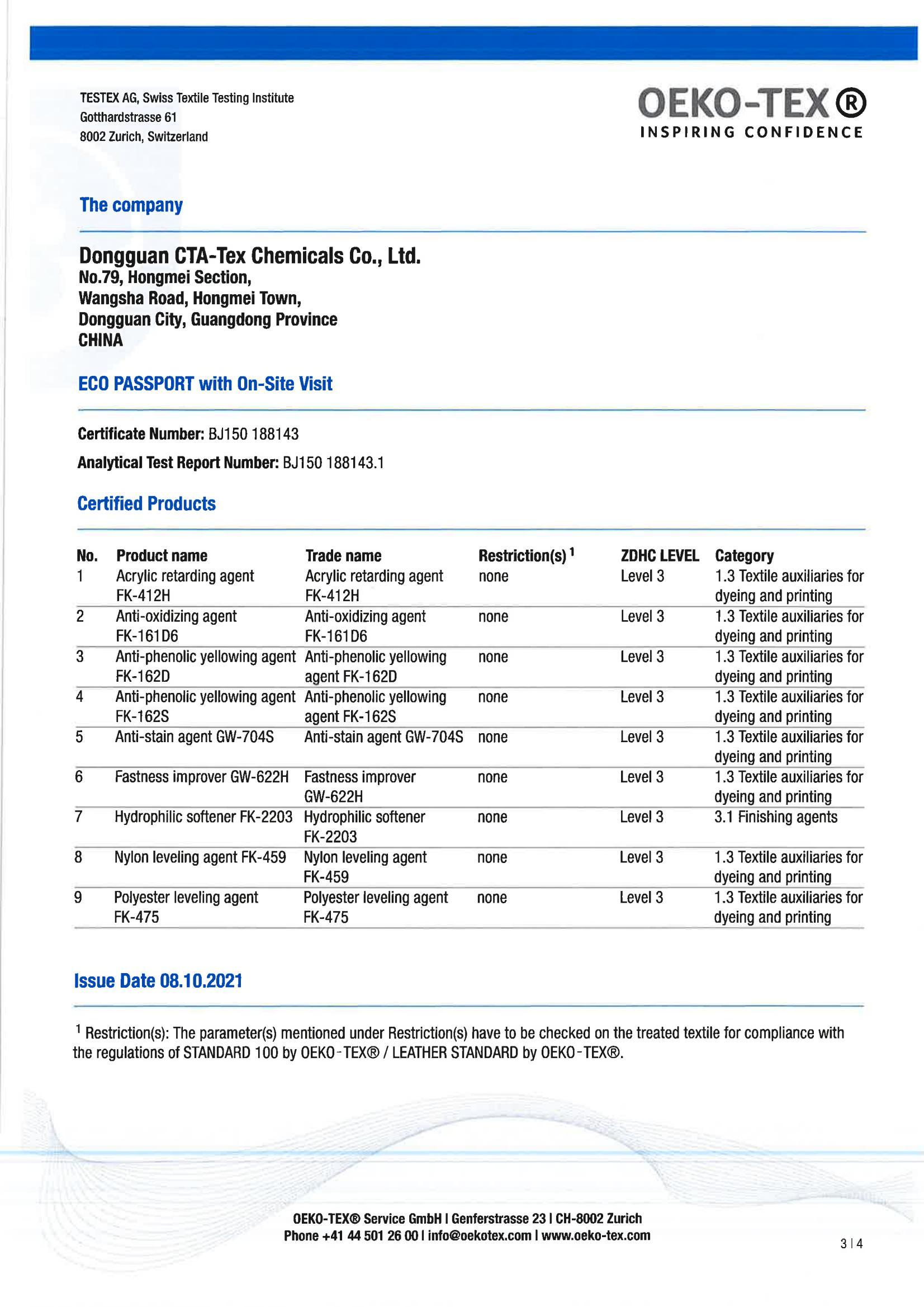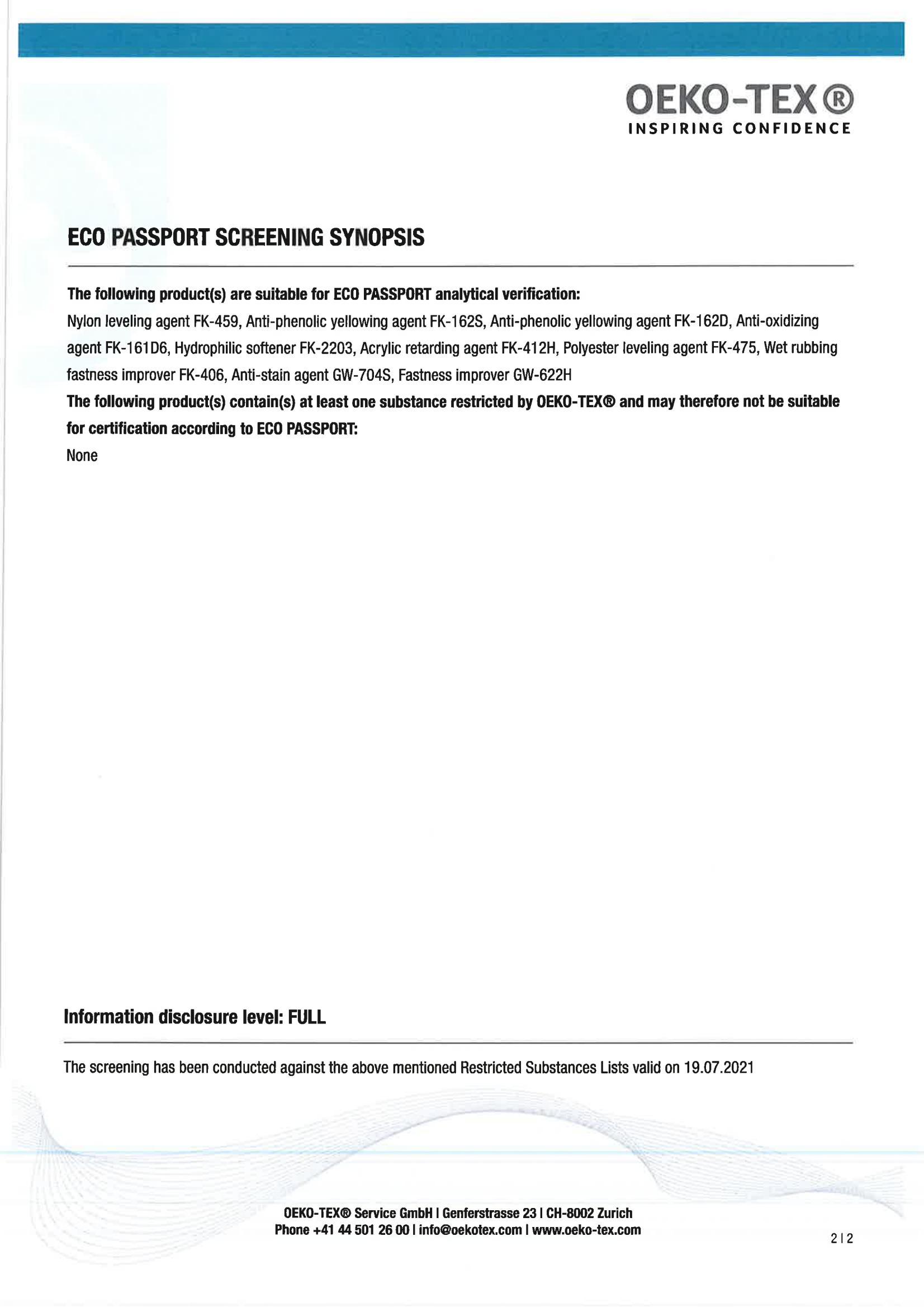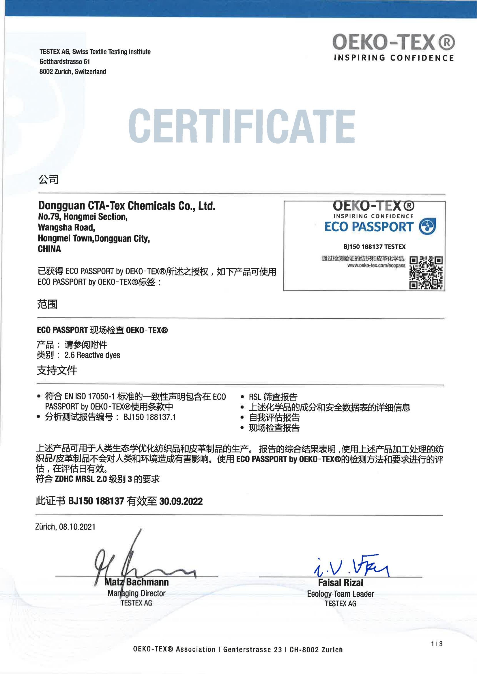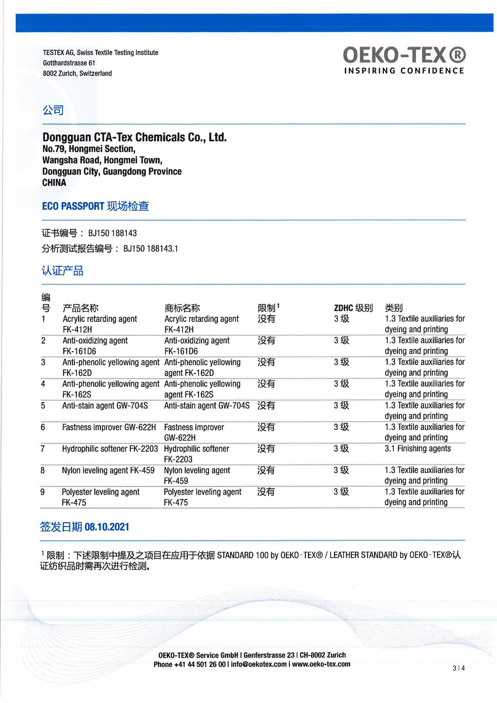 2023年中纺化工ZDHC更新产品名单汇总