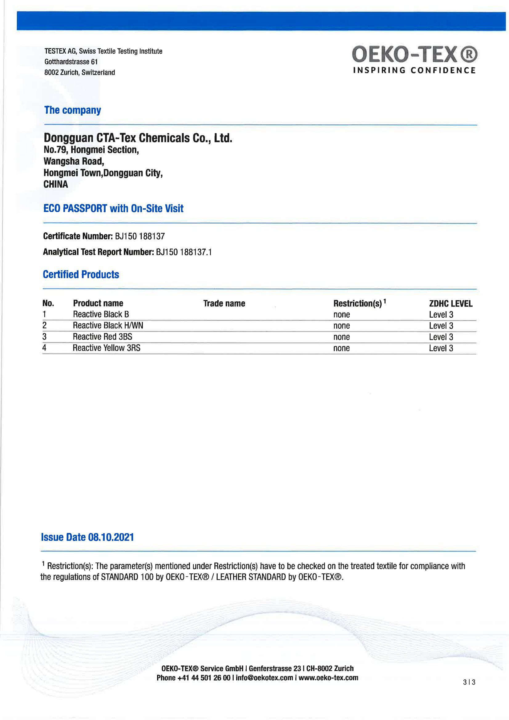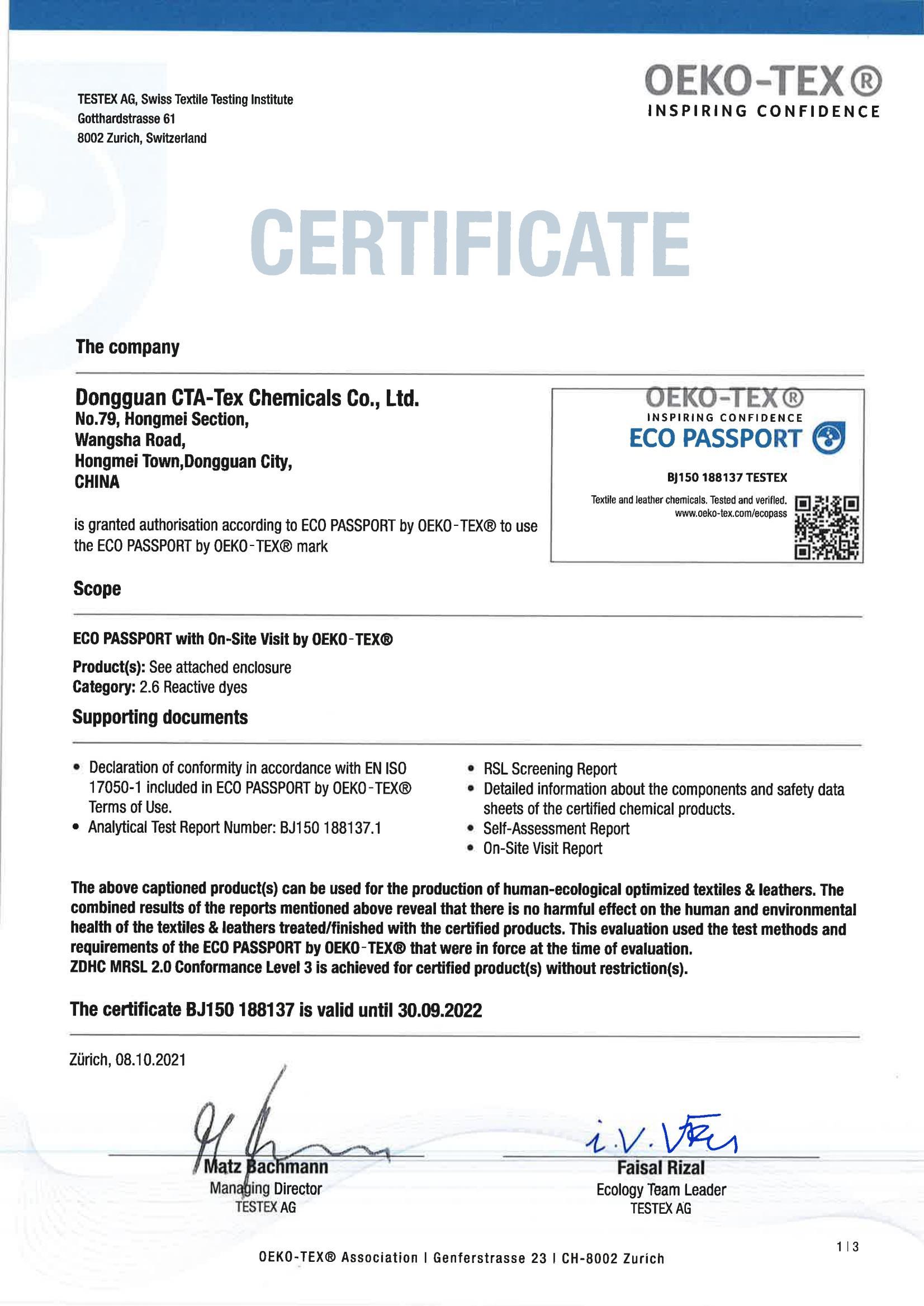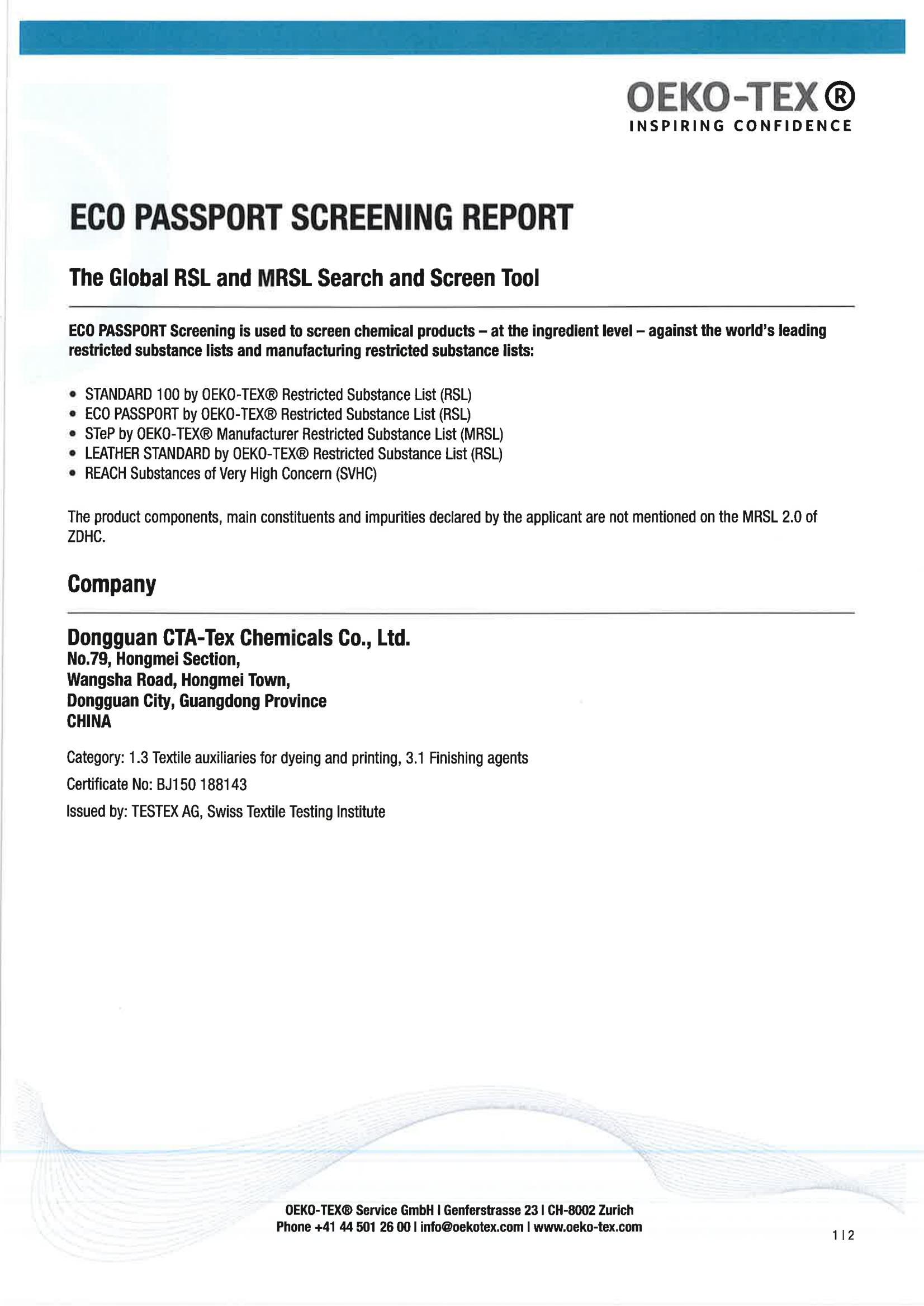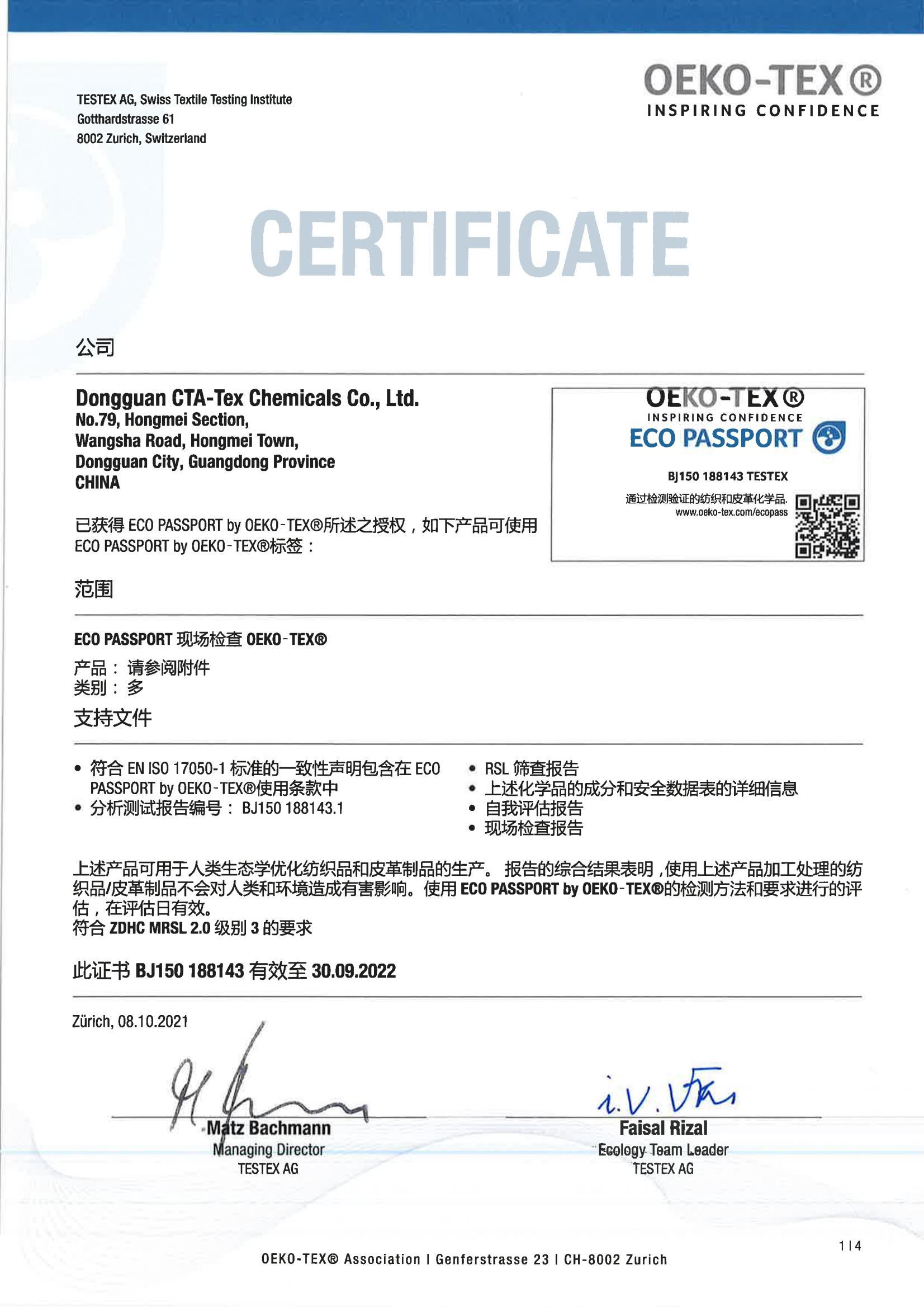 2023 ECO PASSPORT证书与认证产品对照表