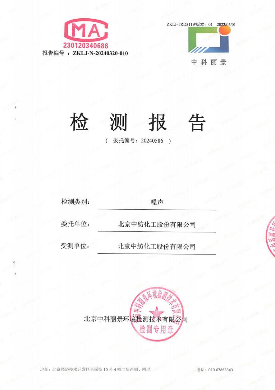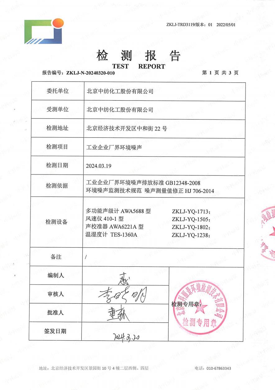 中纺化工有组织废气检测报告、废水检测报告、噪声检测报告